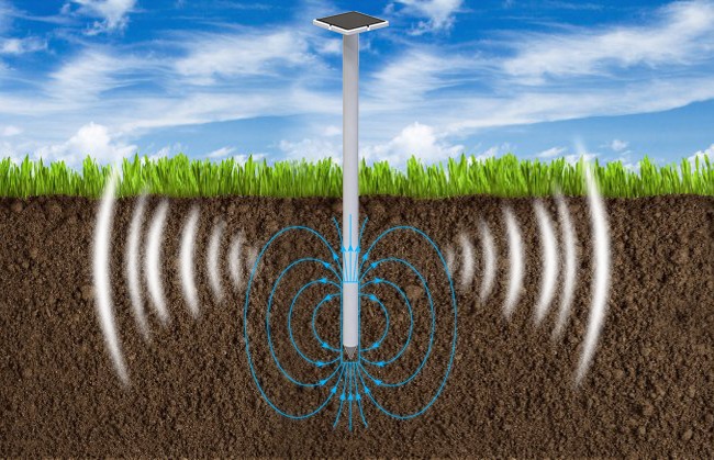 Прибор работает совершенно автономно, питаясь от встроенной солнечной батареи, которая имеет большие размеры и увеличенную мощность, поэтому обеспечивает нормальную работоспособность аппарата даже в пасмурные дни. Днем он оказывает максимальное воздействие на подземных вредителей на площади до 500 кв. м, а ночью работает бесшумно, излучая только магнитный сигнал и выделяя отпугивающий запах.